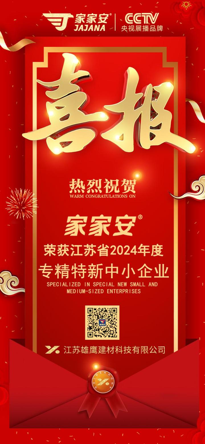 热烈祝贺江苏雄鹰建材科技有限公司入选2024-2027年度“省级专精特新企业”